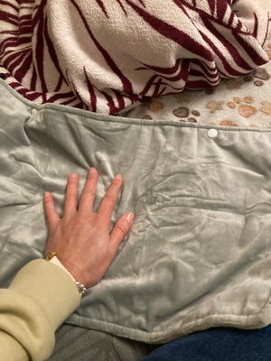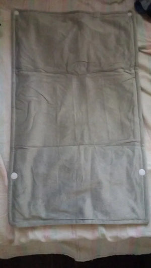 The fabric is durable short velvet; spot clean as needed and follow care instructions. Unplug before cleaning to protect the heating elements.